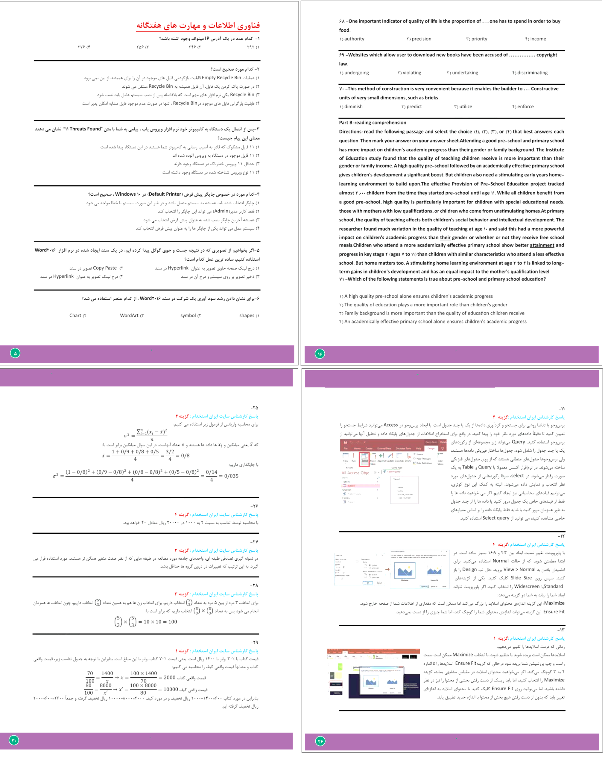 D ویژگیهای بسته اصل سوالات استخدامی:
