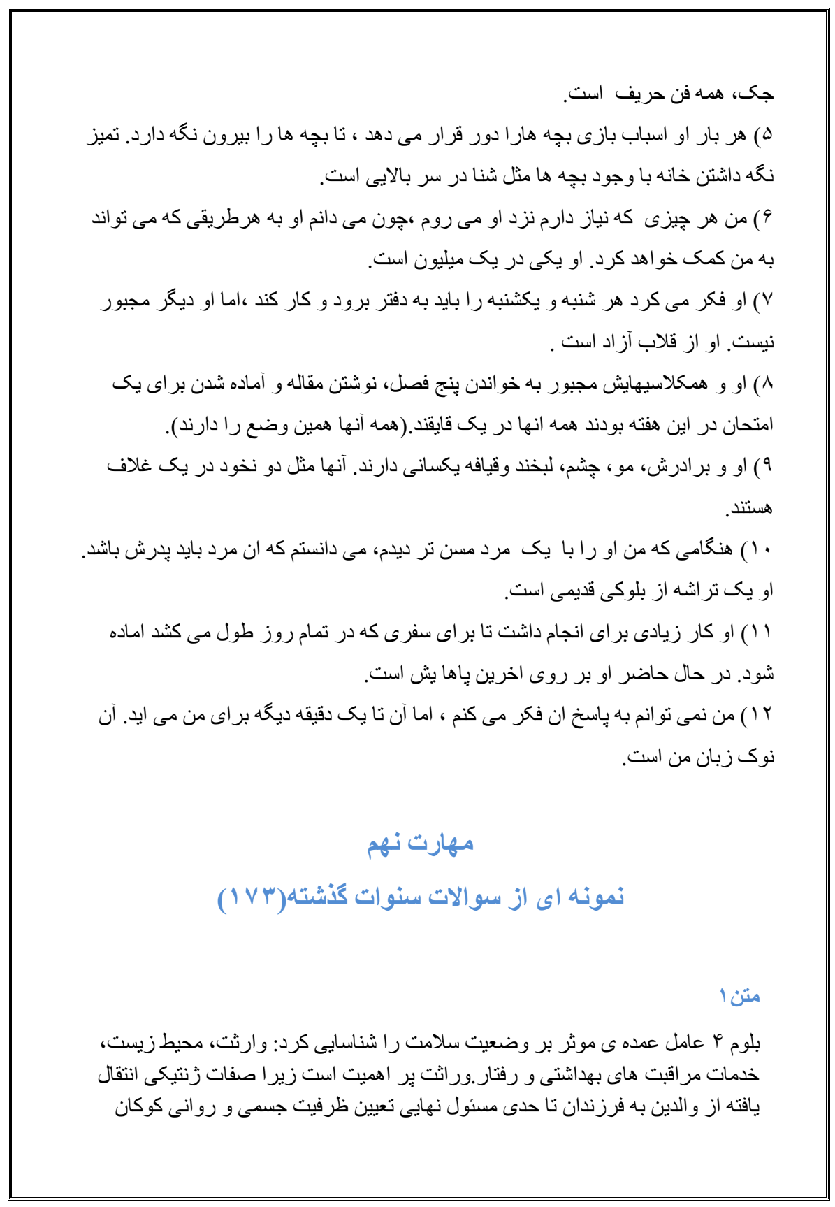 این کتاب که مطابق نمونه سئوالات آزمون وزارت بهداشت تکیه بر مهارتهای لغات و خواندن و درک مطلب داردو مشتمل بر تست های سال های ۸۲ تا ۸۷ هست کتاب اصلی به همراه ترجه آن از لینک زیر قابل دریافت است.