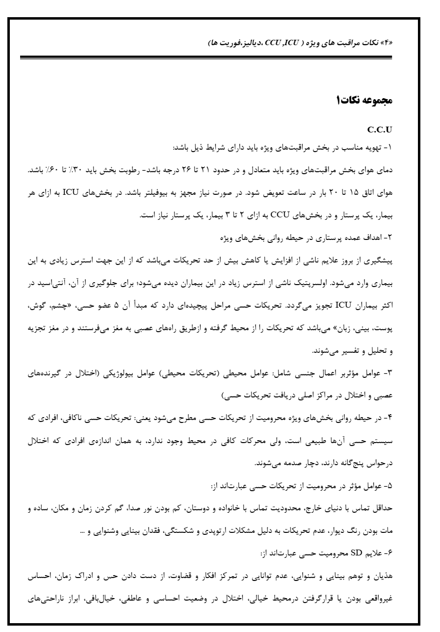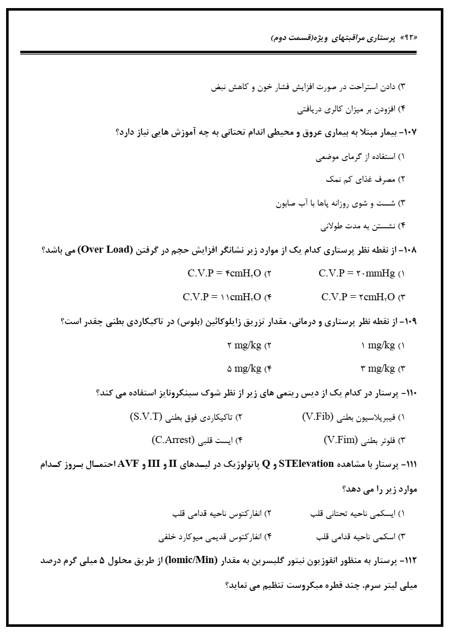 جزوه مراقبت های ویژه آزمون ارشد رشته پرستاری