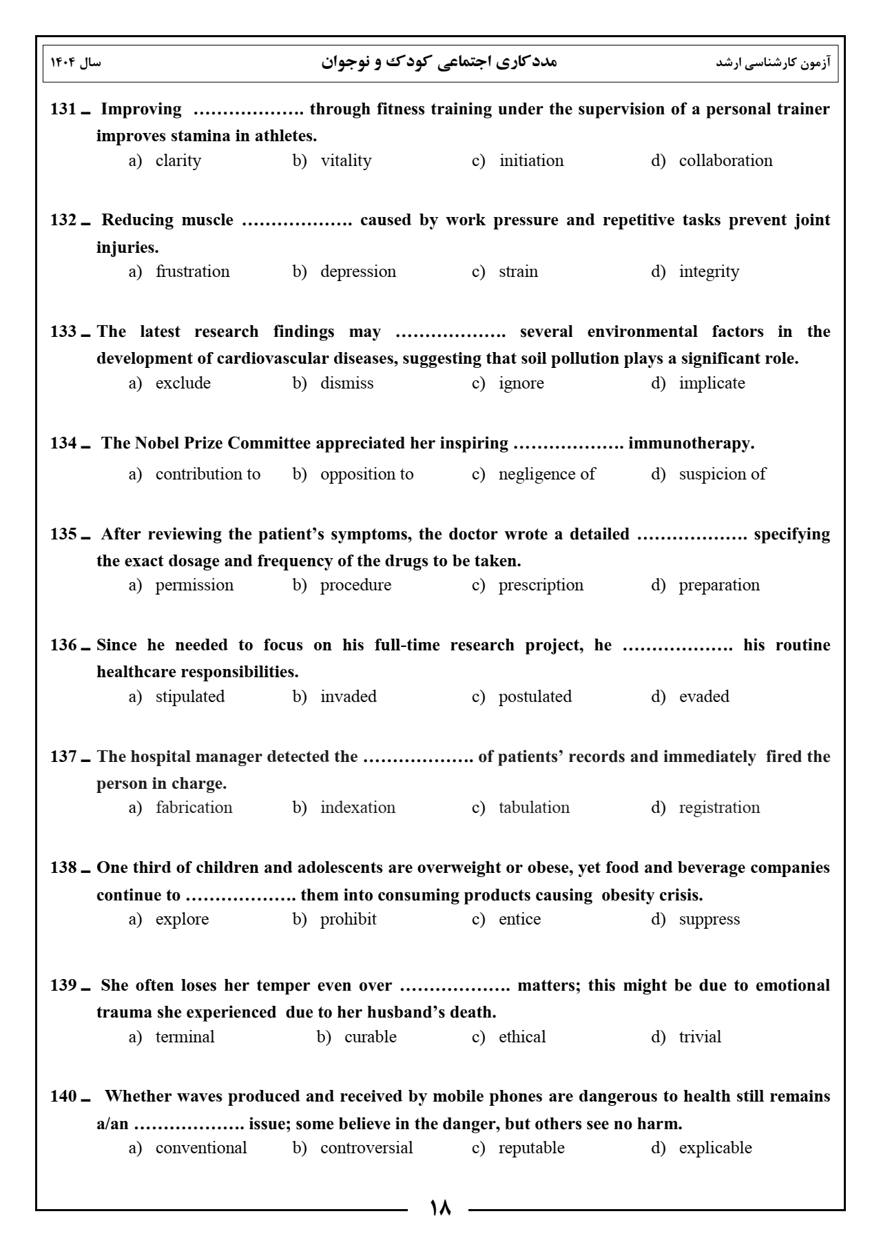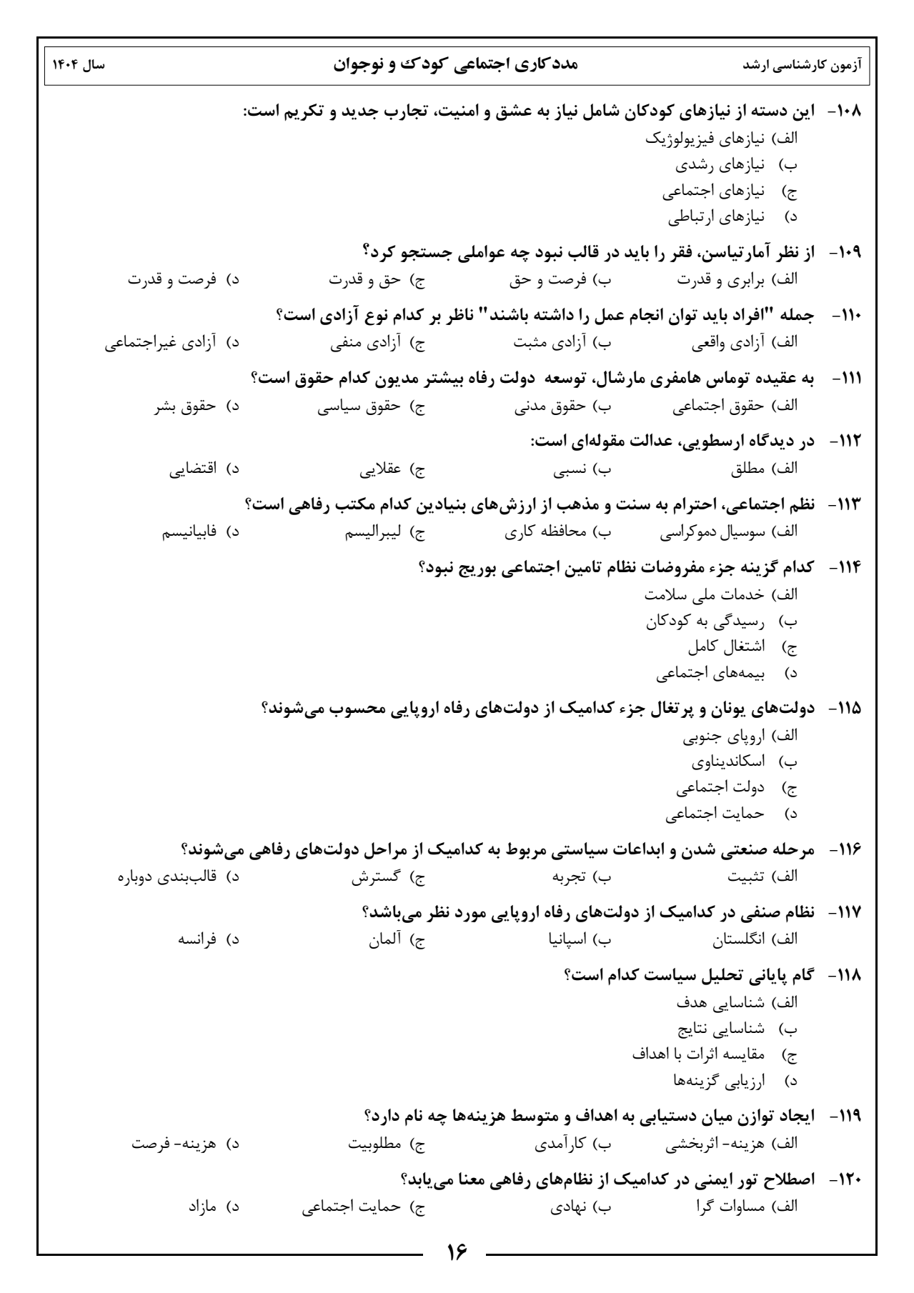 دانلود دفترچه سوالات آزمون کارشناسی ارشد رشته مددکاری اجتماعی کودک ونوجوان سال 1404 (با پاسخنامه)